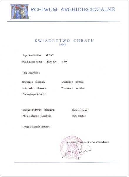 Data i miejsce chrztu