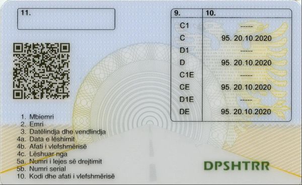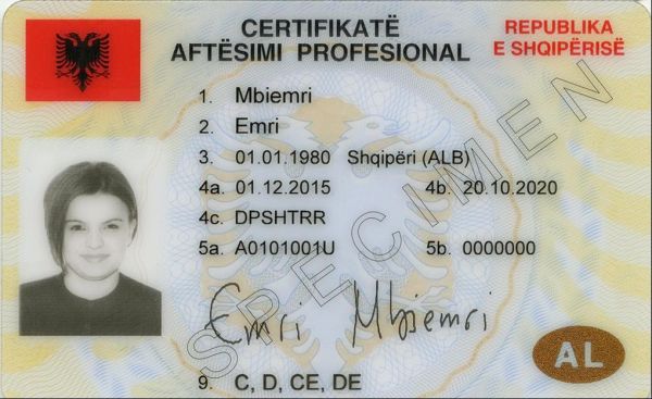 Prawo jazdy jest oficjalnym dokumentem potwierdzającym prawo do kierowania określonymi kategoriami pojazdów, wydawanym przez Drejtoria e Përgjithshme e Shërbimeve të Transportit Rrugor zgodnie z krajowymi oraz unijnymi standardami bezpieczeństwa i wzornictwa dokumentów.
