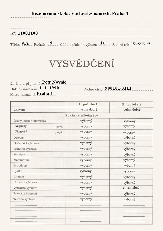 Czeskie Świadectwo Ukończenia Szkoły Podstawowej – Vysvědčení o Ukončení Základní Školy (tłumaczenie na polski)