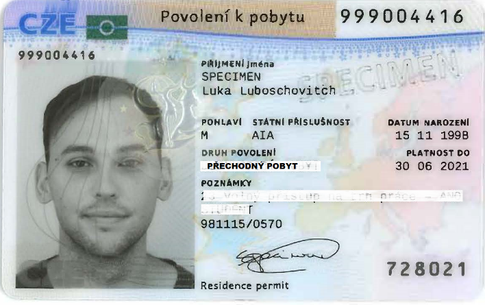 Czeskie Zezwolenie na pobyt tymczasowy – Povolení k pobytu (tłumaczenie na polski)
