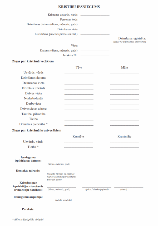 Typowe informacje zawarte w łotewskim akcie chrztu: