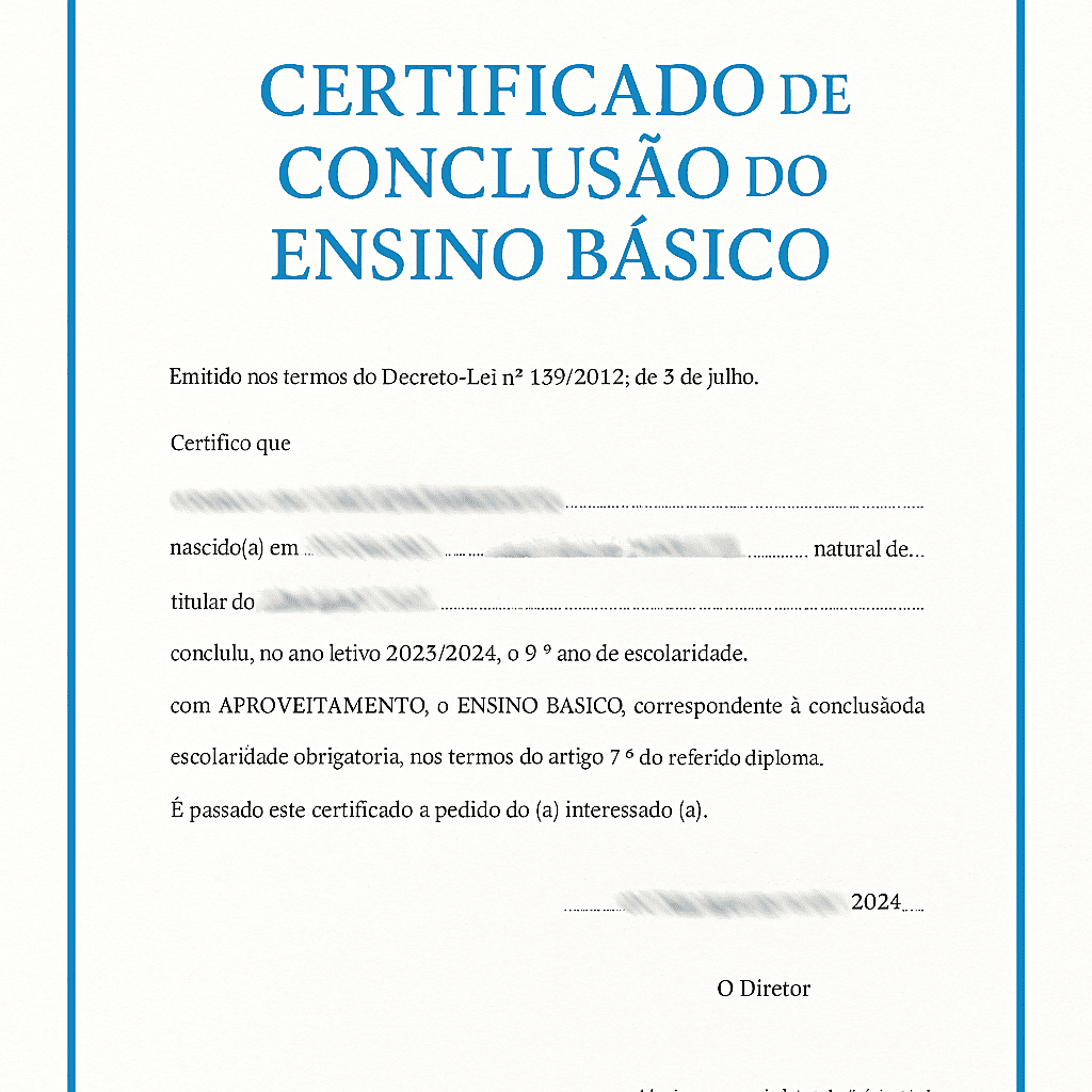 Certificado de Conclusão to portugalskie świadectwo ukończenia szkoły podstawowej (ensino básico), które dokumentuje zakończenie obowiązkowego cyklu kształcenia w Portugalii. Wydawane jest przez konkretne placówki oświatowe (szkoły), zgodnie z przepisami Ministerstwa Edukacji (Ministério da Educação). Dokument zawiera podstawowe dane ucznia oraz informacje o etapie ukończonego nauczania – zazwyczaj po 9. klasie.