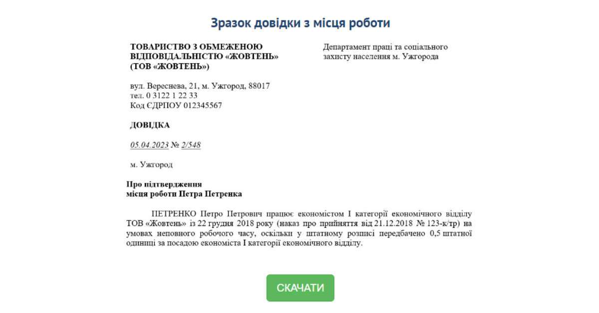 Ukraińskie świadectwo pracy (Довідка з місця роботи) to dokument wystawiany przez pracodawcę w Ukrainie na wniosek pracownika. Potwierdza on m.in. fakt zatrudnienia, zajmowane stanowisko, wymiar etatu oraz okres pracy. Może również zawierać dane dotyczące wynagrodzenia lub pełnionych obowiązków.
